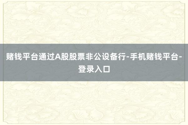 赌钱平台通过A股股票非公设备行-手机赌钱平台-登录入口