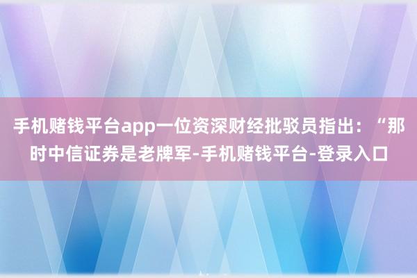 手机赌钱平台app一位资深财经批驳员指出:“那时中信证券是老牌军-手机赌钱平台-登录入口